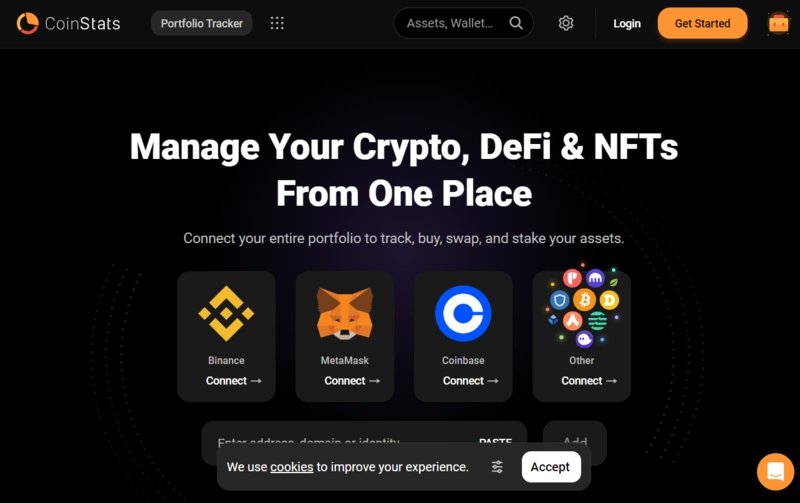 - CoinStats: Another popular option is CoinStats, which offers a comprehensive method for monitoring crypto and DeFi investments. It streamlines tracking across exchanges and wallets, saving you time and effort by eliminating the need to switch between platforms.