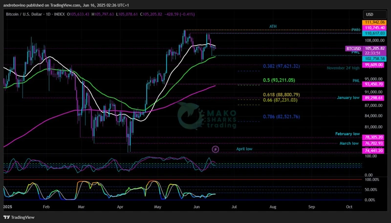 Bitcoin kicks off the new week at 105.5k After last week's drop from 110k Bitcoin leaves behind the question whether it can defend the 100k support despite the ‘’rattling of sabers’’ and the escalating conflict between Iran and Israel or will the Bears seize the context and pull the price into the 90k zone? 📞 💀 😇