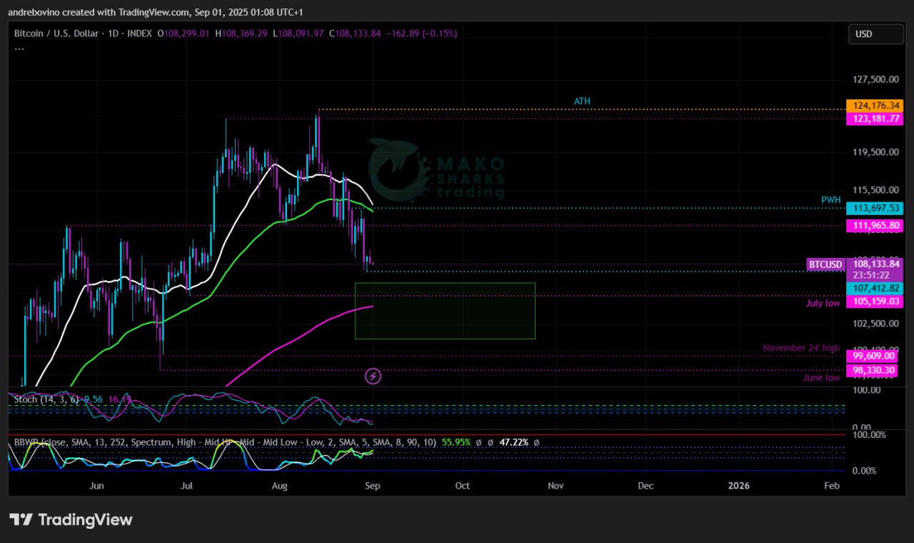 Bitcoin kicks off the week at 108.2k and as it seems keeps heading for a test of the 100k support! New week, same idea, same question! Low/mid 100k and a bounce or a fresh dive below this key support level?! Bulls & Hopium or Bears & Anxiety?!🐻 ⏱ 🐂