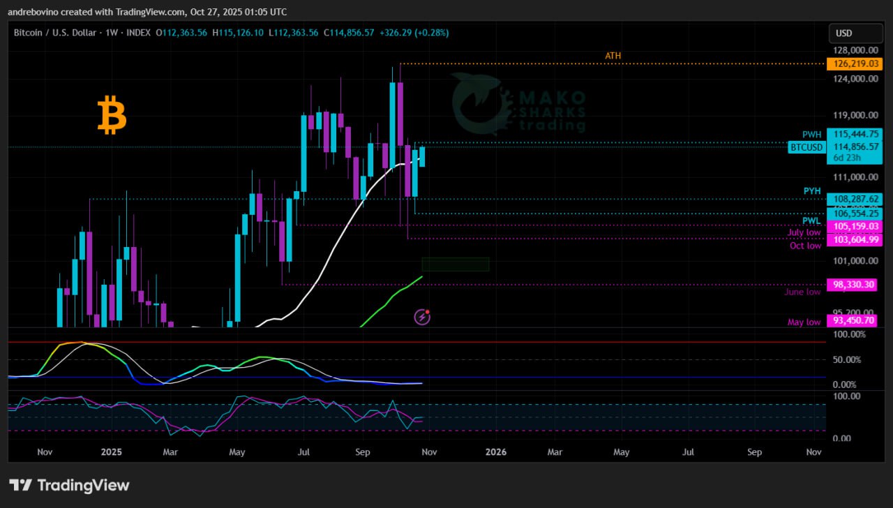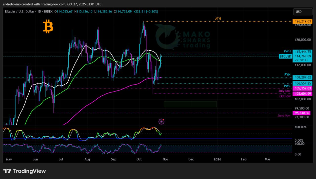 During the past week Bitcoin moved mostly within a range between the daily 21SMA 112.5k, 55EMA 113.7k and daily 200EMA 108.2k, and with the recent Sunday breakout it managed to sneak above 21SMA & 55EMA. What is extremely important now for Bulls and Hopium is to get a weekly closure above the weekly 21SMA 113.4k and in ideal conditions follow that with multiple daily closes above the Previous Week High (PWH) 115.4k which would show strength and a potential challenge of the resistance above.