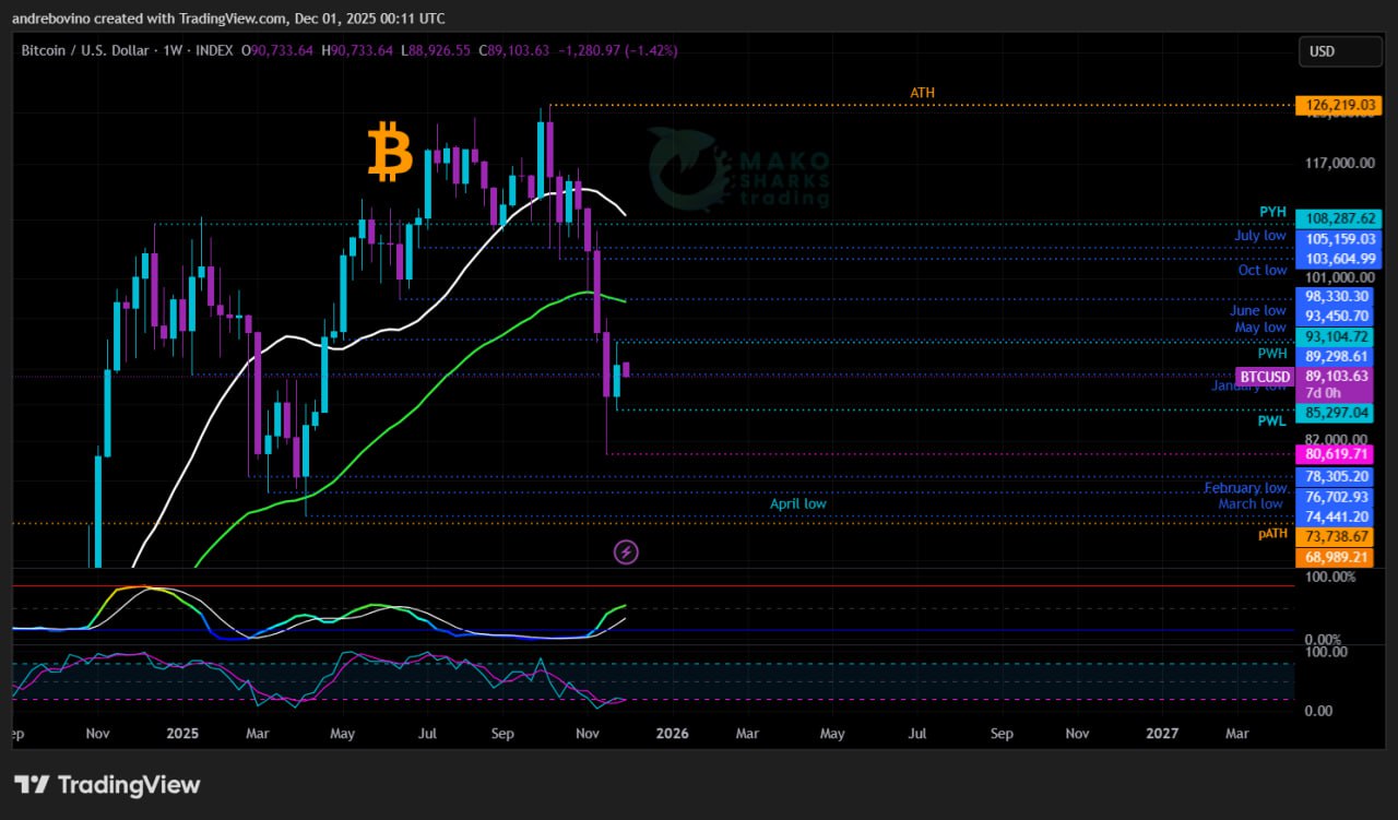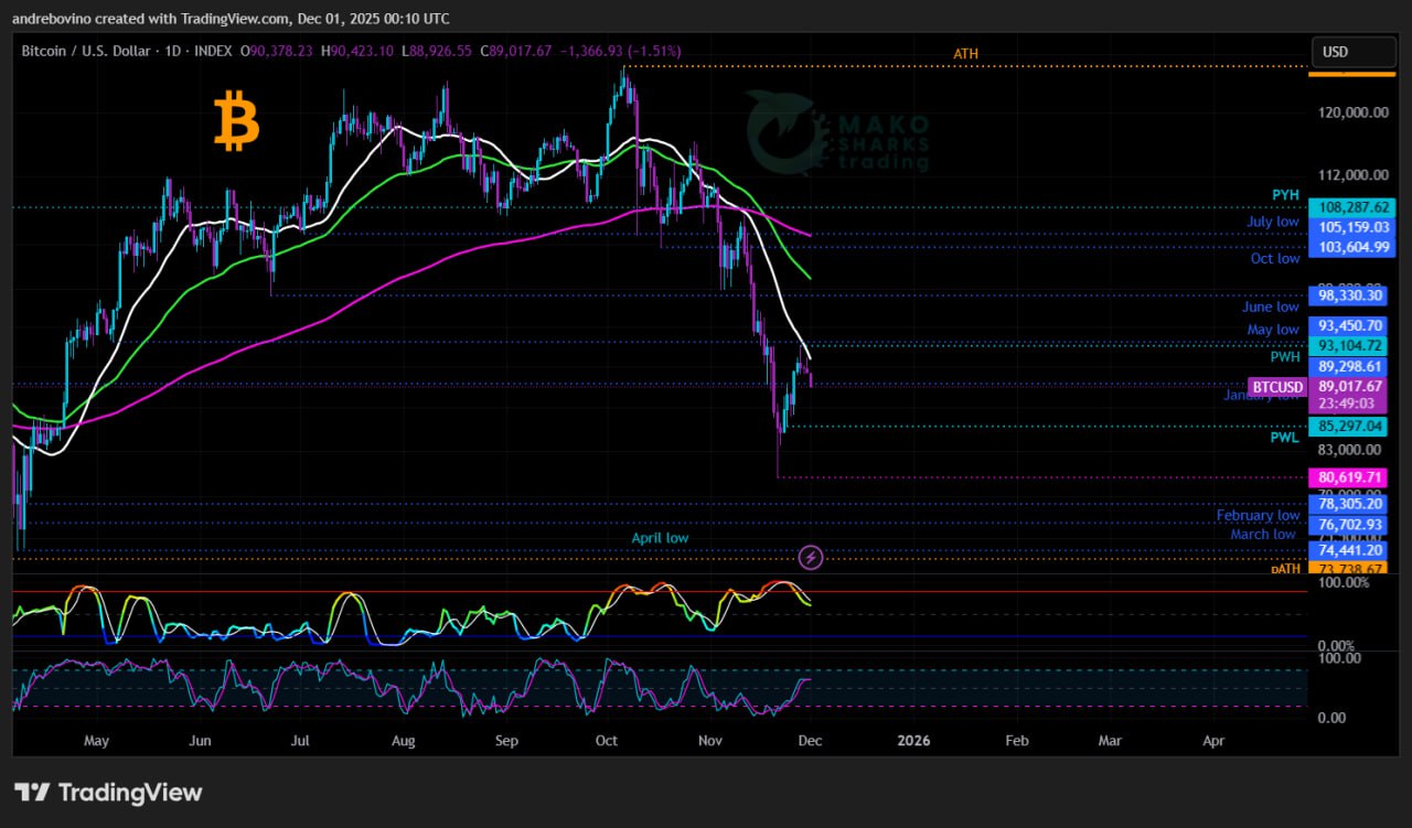 Bitcoin kicks off its week at 90.3k! For now, Bitcoin is barely squeezing through Gollum’s caves! The situation remains without any significant changes compared to last week, and Bulls once again find themselves on “thin ice” around the monthly/weekly close/open.