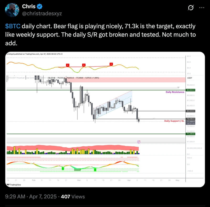 Bitcoin (BTC), currently priced at $79,153, recently dipped to a four-month low of $74,500 on April 7, and there are concerns that the price could still drop further.