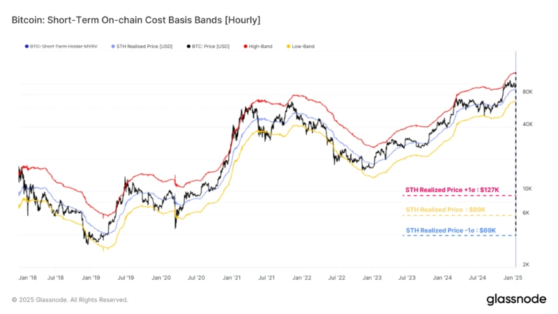 Glassnode’s Short-Term Holder (STH) realized price bands suggest that the average cost basis for short-term holders is around $89,000. Historically, the $69,000 range has served as a “max pain” zone where short-term investors tend to capitulate during market pullbacks, often leading to long-term investors stepping in and providing support.