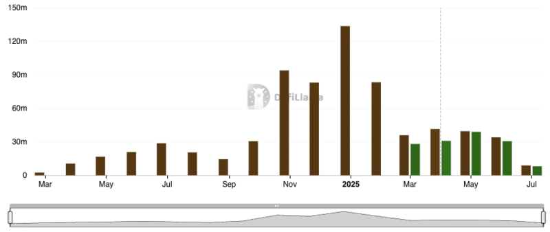 While growth has cooled in 2025, Pumpfun remains highly profitable, posting $264 million in revenue year-to-date and maintaining the 7th-highest 30-day revenue in DeFi. July, however, is on track to be the slowest month since September 2024.